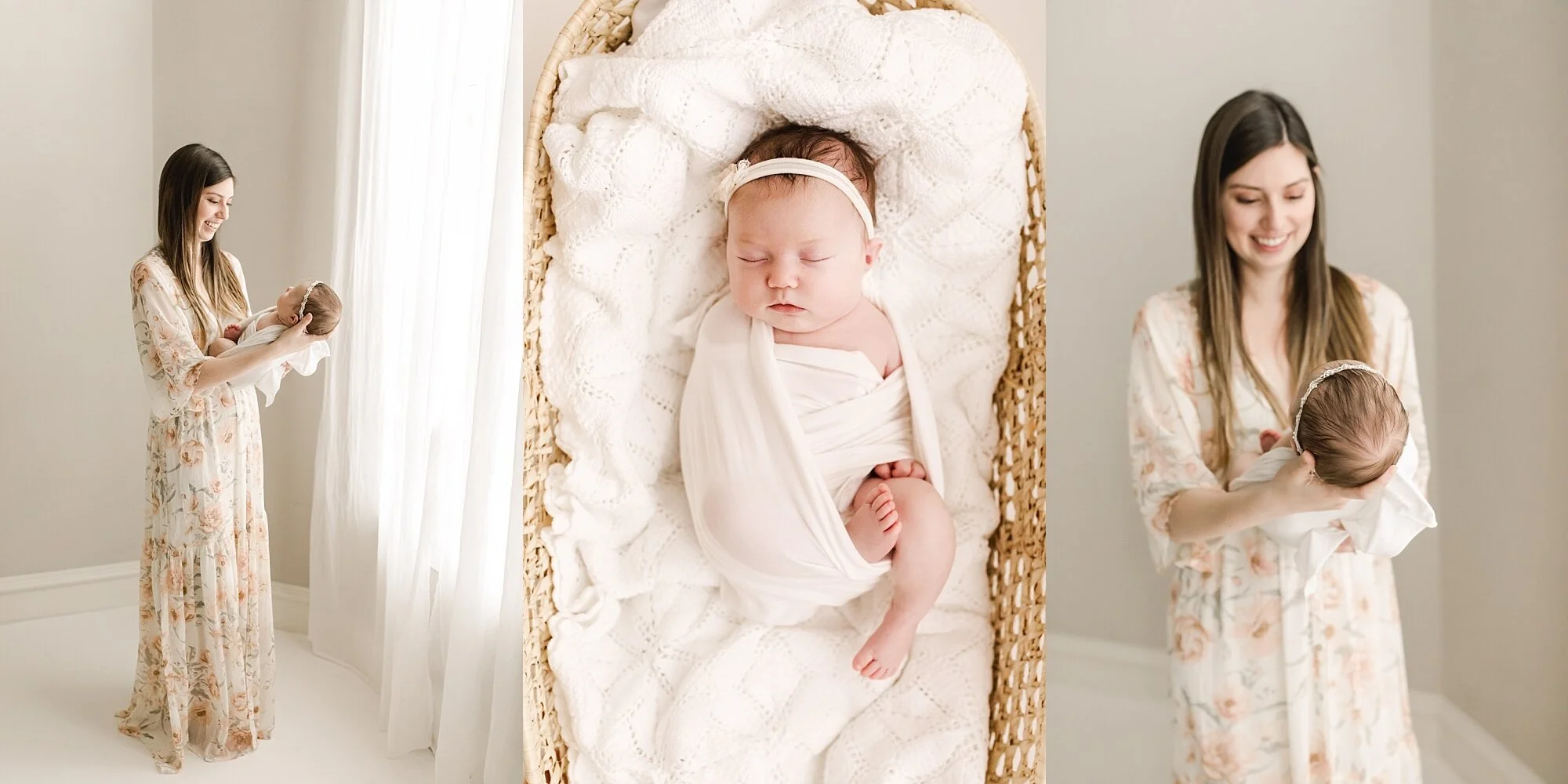 Use of the studio collection of freshly cleaned blankets, wraps and headbands for baby, and use of the studio wardrobe for postpartum-friendly dresses for mom.