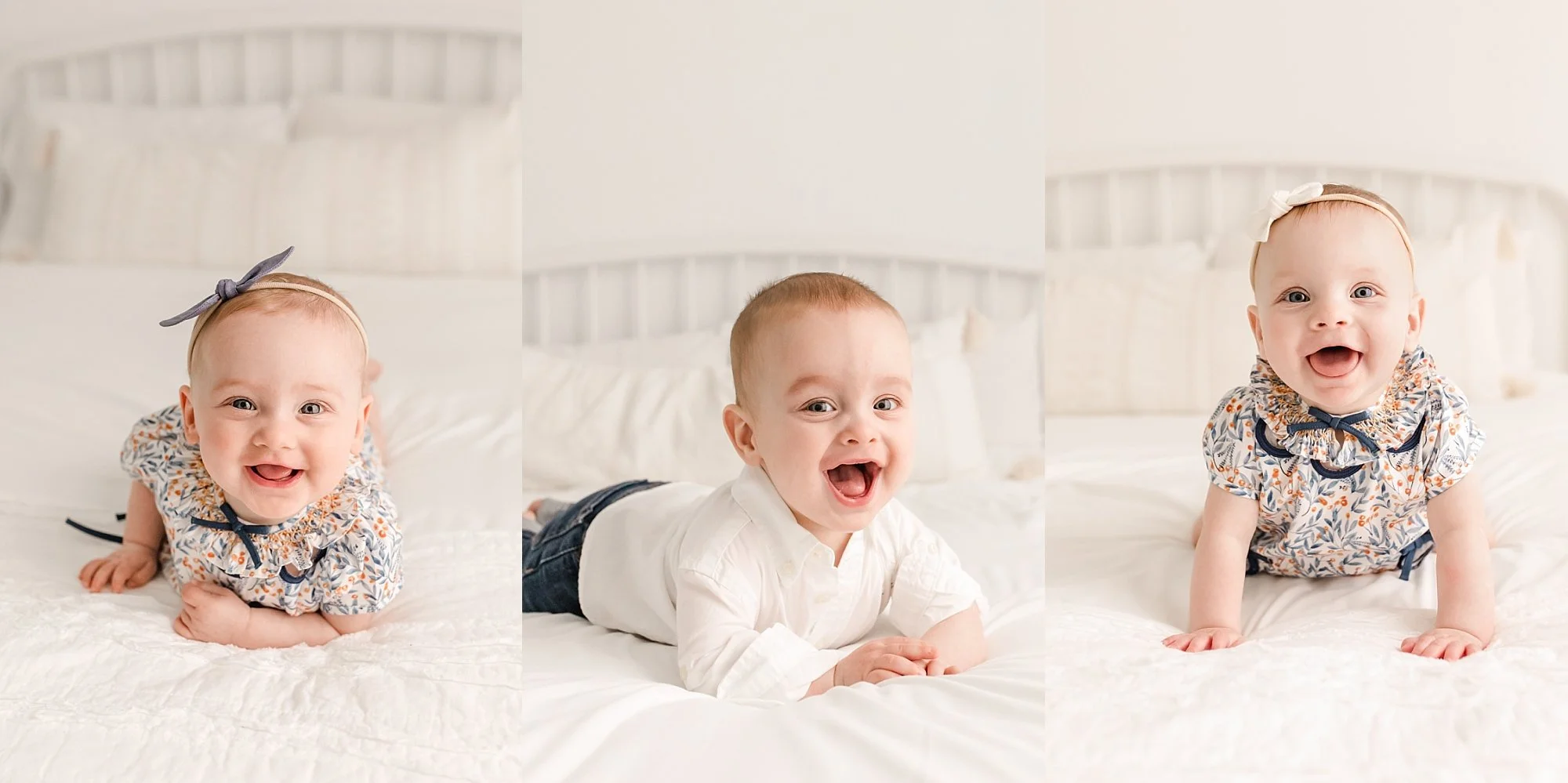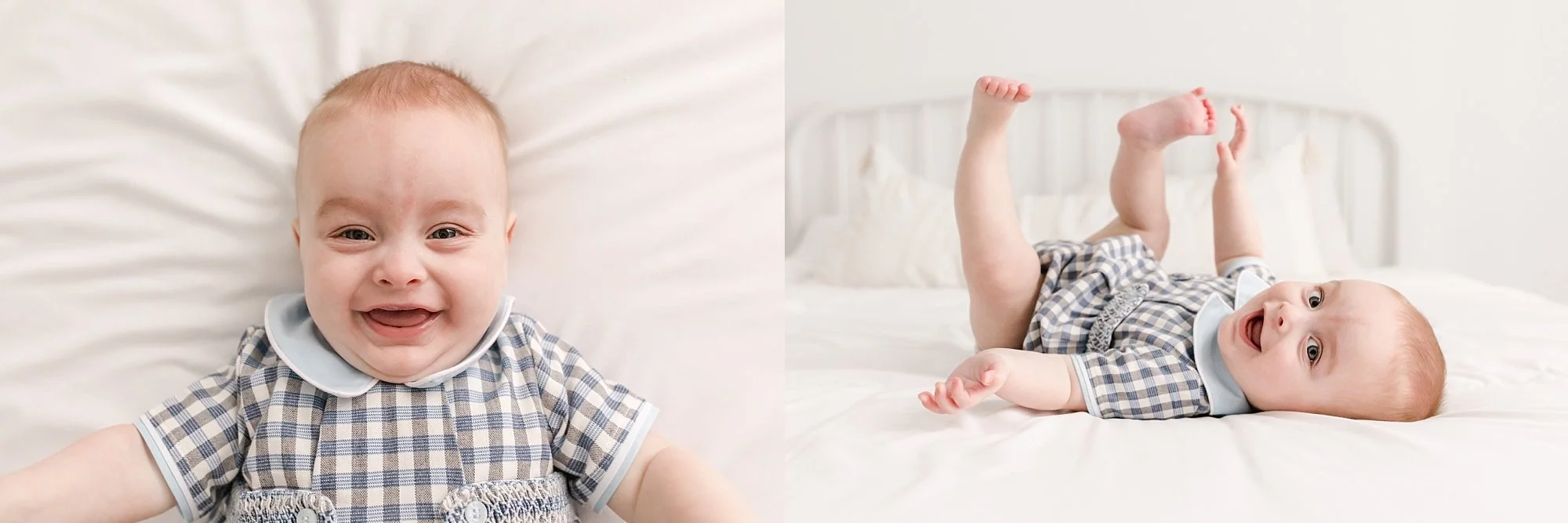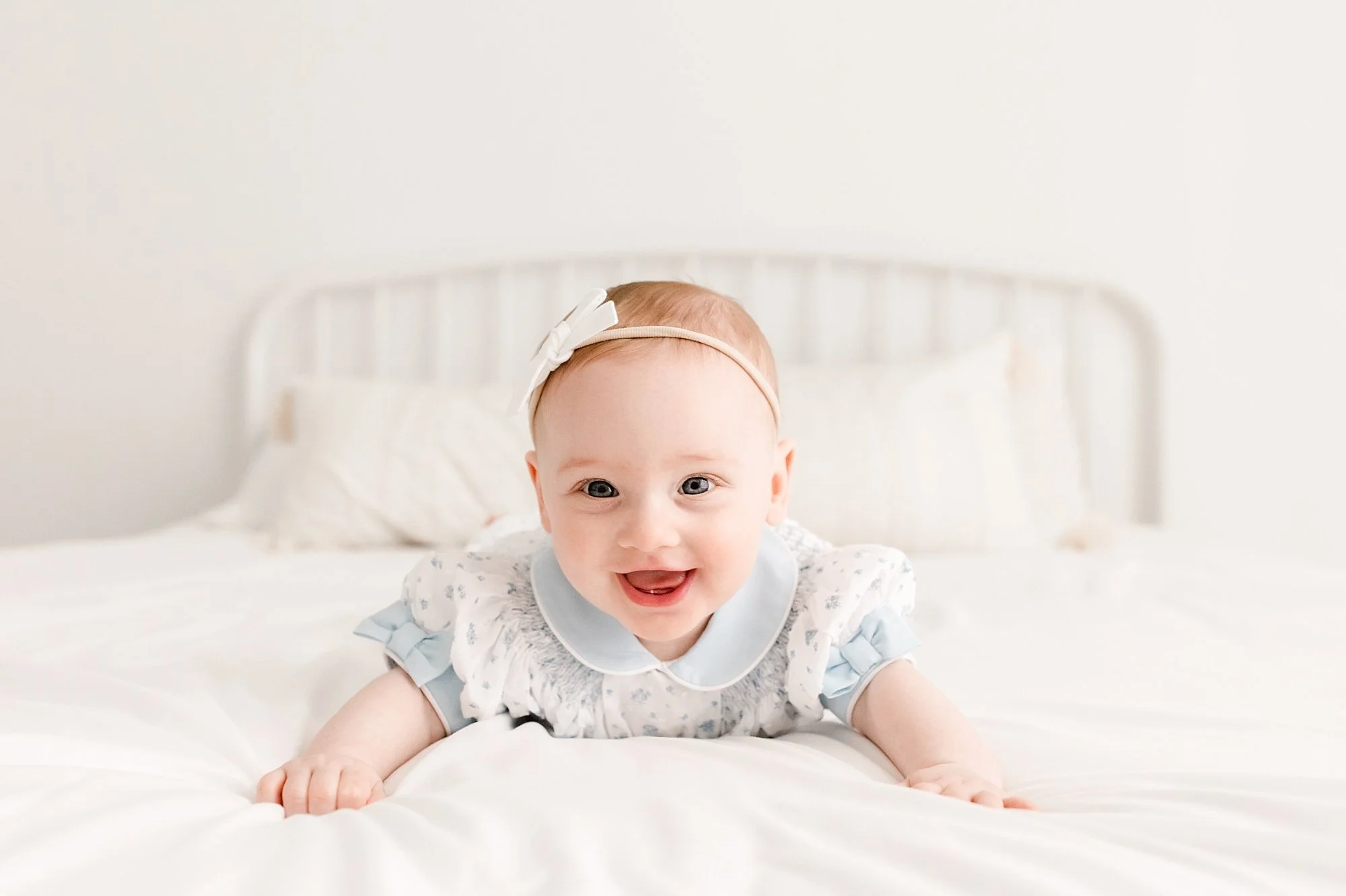 1. When your little one is just beginning to sit and on the verge of crawling, that’s the perfect milestone to schedule a photo shoot. Here’s why - eye contact and curiosity of their surroundings. We’re able to capture that personality starting to come out and get some great expressions.