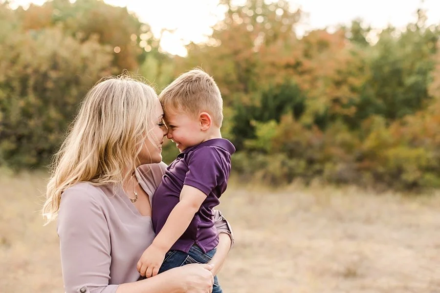 Mother and son during family photos in Plano field